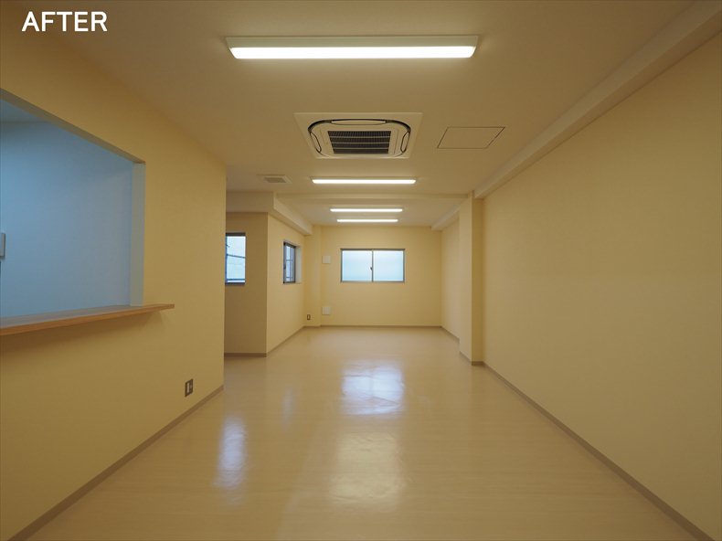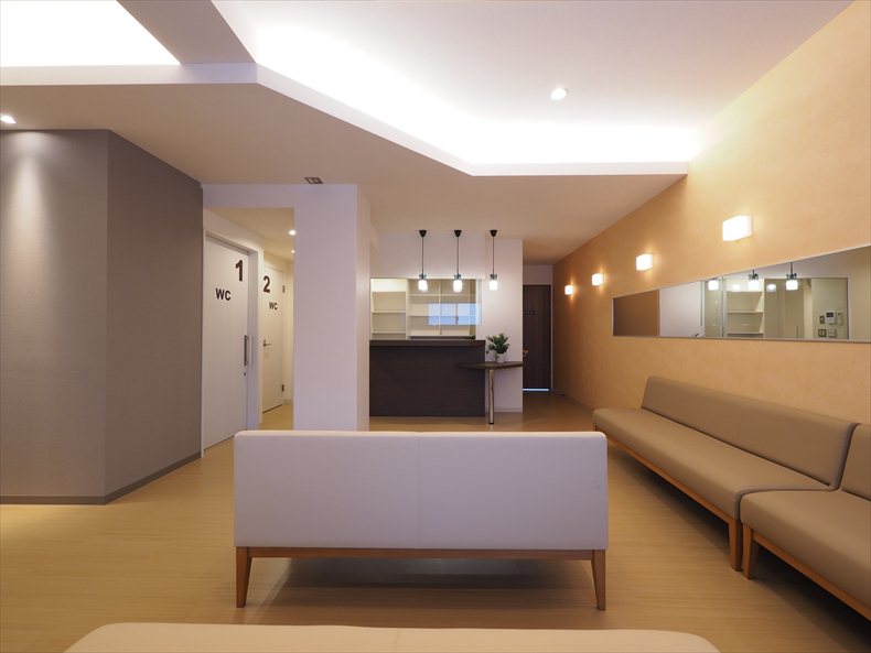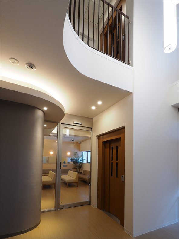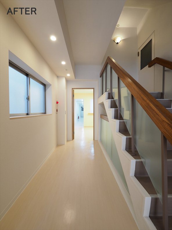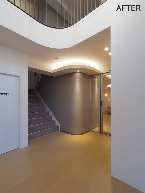 • 長く地域で親しまれてきた病院のリノベーション。 RC造3階建ての建物の改修計画です。1階をリニューアルした診療所とし、2階に工事中の仮診療所と院長家族のための住宅を整備しました。エレベーターを設置したことで2階も有効活用でき、老朽化した診療所が明るく現代的なクリニックへと生まれ変わりました。